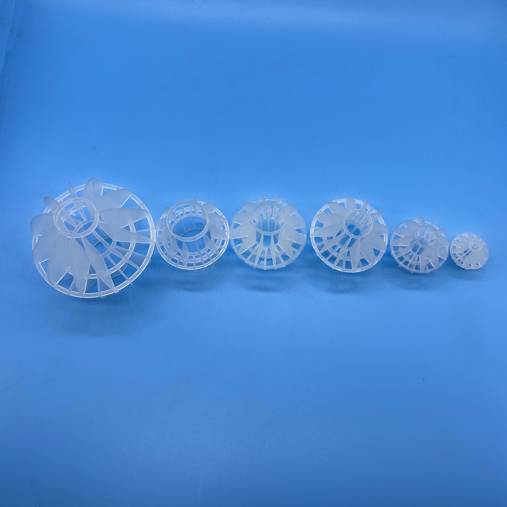 該產品采用聚丙烯塑料制成球狀,在球中部沿整個周長有一道加固環(huán),環(huán)的上下各有十二片球瓣,沿中心軸呈放射性布置,由于表面積大,傳質效率高,產品的球瓣于球瓣之間空間大,且重量輕 強度大,安裝方便,耐高溫 耐腐蝕,性能穩(wěn)定。