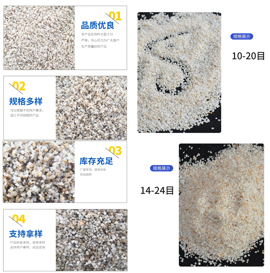 石英砂有——普通石英砂 精致石英砂 酸性石英砂 機制石英砂 天然海砂,有現(xiàn)貨歡迎下單;